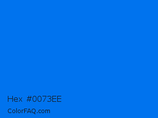 Hex #0073ee Color is a normal blue color and the nearest color is Brandeis Blue #0070ff. Hex code #0073ee and RGB value is rgb(0,115,238). In RGB color space, this color is composed of 0% red, 45% green, 93% blue, In CMYK color space, this color is composed of 100% cyan, 52% magenta, 0% yellow , 7% black , In HSL color space, this color has a hue angle of 211° , 100% saturation and 47% lightness.