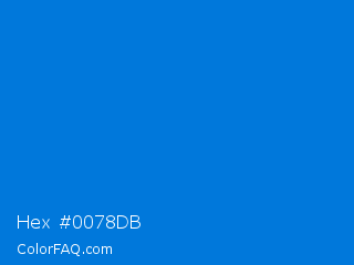 Hex #0078db Color is a normal blue color and the nearest color is True Blue #0073cf. Hex code #0078db and RGB value is rgb(0,120,219). In RGB color space, this color is composed of 0% red, 47% green, 86% blue, In CMYK color space, this color is composed of 100% cyan, 45% magenta, 0% yellow , 14% black , In HSL color space, this color has a hue angle of 207° , 100% saturation and 43% lightness.