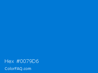 Hex #0079d6 Color is a normal blue color and the nearest color is True Blue #0073cf. Hex code #0079d6 and RGB value is rgb(0,121,214). In RGB color space, this color is composed of 0% red, 47% green, 84% blue, In CMYK color space, this color is composed of 100% cyan, 43% magenta, 0% yellow , 16% black , In HSL color space, this color has a hue angle of 206° , 100% saturation and 42% lightness.