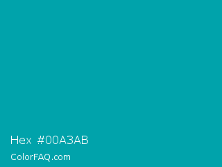 Hex #00a3ab Color is a normal cyan color and the nearest color is Blue Munsell #0093af. Hex code #00a3ab and RGB value is rgb(0,163,171). In RGB color space, this color is composed of 0% red, 64% green, 67% blue, In CMYK color space, this color is composed of 100% cyan, 5% magenta, 0% yellow , 33% black , In HSL color space, this color has a hue angle of 183° , 100% saturation and 34% lightness.