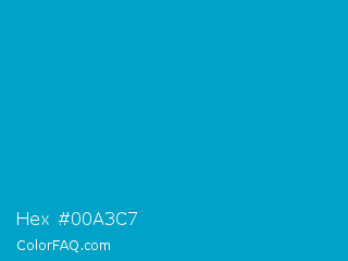 Hex #00a3c7 Color is a normal cyan color and the nearest color is Pacific Blue Crayola #009dc4. Hex code #00a3c7 and RGB value is rgb(0,163,199). In RGB color space, this color is composed of 0% red, 64% green, 78% blue, In CMYK color space, this color is composed of 100% cyan, 18% magenta, 0% yellow , 22% black , In HSL color space, this color has a hue angle of 191° , 100% saturation and 39% lightness.