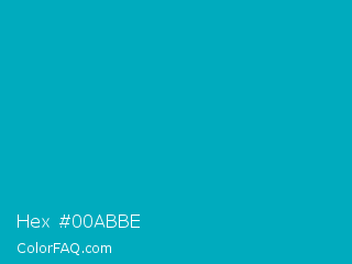 Hex #00abbe Color is a normal cyan color and the nearest color is Pacific Blue Crayola #009dc4. Hex code #00abbe and RGB value is rgb(0,171,190). In RGB color space, this color is composed of 0% red, 67% green, 75% blue, In CMYK color space, this color is composed of 100% cyan, 10% magenta, 0% yellow , 25% black , In HSL color space, this color has a hue angle of 186° , 100% saturation and 37% lightness.