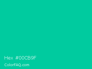Hex #00cb9f Color is a normal cyan color and the nearest color is Caribbean Green #00cc99. Hex code #00cb9f and RGB value is rgb(0,203,159). In RGB color space, this color is composed of 0% red, 80% green, 62% blue, In CMYK color space, this color is composed of 100% cyan, 0% magenta, 22% yellow , 20% black , In HSL color space, this color has a hue angle of 167° , 100% saturation and 40% lightness.