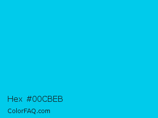 Hex #00cbeb Color is a normal cyan color and the nearest color is Cyan Process #00b7eb. Hex code #00cbeb and RGB value is rgb(0,203,235). In RGB color space, this color is composed of 0% red, 80% green, 92% blue, In CMYK color space, this color is composed of 100% cyan, 14% magenta, 0% yellow , 8% black , In HSL color space, this color has a hue angle of 188° , 100% saturation and 46% lightness.