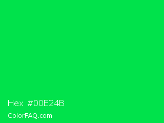 Hex #00e24b Color is a normal green color and the nearest color is Malachite #0bda51. Hex code #00e24b and RGB value is rgb(0,226,75). In RGB color space, this color is composed of 0% red, 89% green, 29% blue, In CMYK color space, this color is composed of 100% cyan, 0% magenta, 67% yellow , 11% black , In HSL color space, this color has a hue angle of 140° , 100% saturation and 44% lightness.