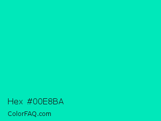 Hex #00e8ba Color is a normal cyan color and the nearest color is Robins Egg Blue #00cccc. Hex code #00e8ba and RGB value is rgb(0,232,186). In RGB color space, this color is composed of 0% red, 91% green, 73% blue, In CMYK color space, this color is composed of 100% cyan, 0% magenta, 20% yellow , 9% black , In HSL color space, this color has a hue angle of 168° , 100% saturation and 45% lightness.