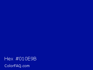 Hex #010e9b Color is a normal blue color and the nearest color is Duke Blue #00009c. Hex code #010e9b and RGB value is rgb(1,14,155). In RGB color space, this color is composed of 0% red, 5% green, 61% blue, In CMYK color space, this color is composed of 99% cyan, 91% magenta, 0% yellow , 39% black , In HSL color space, this color has a hue angle of 235° , 99% saturation and 31% lightness.