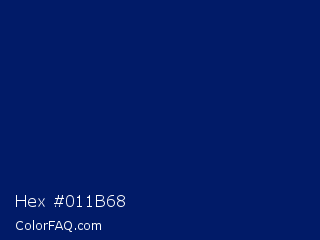 Hex #011b68 Color is a very dark blue color and the nearest color is Royal Blue #002366. Hex code #011b68 and RGB value is rgb(1,27,104). In RGB color space, this color is composed of 0% red, 11% green, 41% blue, In CMYK color space, this color is composed of 99% cyan, 74% magenta, 0% yellow , 59% black , In HSL color space, this color has a hue angle of 225° , 98% saturation and 21% lightness.