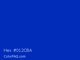 Hex #012cba Color is a normal blue color and the nearest color is UA Blue #0033aa. Hex code #012cba and RGB value is rgb(1,44,186). In RGB color space, this color is composed of 0% red, 17% green, 73% blue, In CMYK color space, this color is composed of 99% cyan, 76% magenta, 0% yellow , 27% black , In HSL color space, this color has a hue angle of 226° , 99% saturation and 37% lightness.