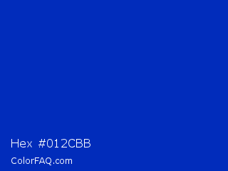 Hex #012cbb Color is a normal blue color and the nearest color is UA Blue #0033aa. Hex code #012cbb and RGB value is rgb(1,44,187). In RGB color space, this color is composed of 0% red, 17% green, 73% blue, In CMYK color space, this color is composed of 99% cyan, 76% magenta, 0% yellow , 27% black , In HSL color space, this color has a hue angle of 226° , 99% saturation and 37% lightness.