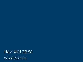 Hex #013b68 Color is a very dark blue color and the nearest color is Regal Blue #013f6a. Hex code #013b68 and RGB value is rgb(1,59,104). In RGB color space, this color is composed of 0% red, 23% green, 41% blue, In CMYK color space, this color is composed of 99% cyan, 43% magenta, 0% yellow , 59% black , In HSL color space, this color has a hue angle of 206° , 98% saturation and 21% lightness.