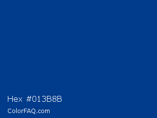 Hex #013b8b Color is a dark blue color and the nearest color is Air Force Blue USAF #00308f. Hex code #013b8b and RGB value is rgb(1,59,139). In RGB color space, this color is composed of 0% red, 23% green, 55% blue, In CMYK color space, this color is composed of 99% cyan, 58% magenta, 0% yellow , 45% black , In HSL color space, this color has a hue angle of 215° , 99% saturation and 27% lightness.