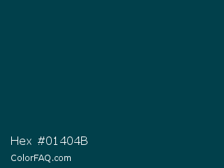 Hex #01404b Color is a very dark cyan color and the nearest color is Warm Black #004242. Hex code #01404b and RGB value is rgb(1,64,75). In RGB color space, this color is composed of 0% red, 25% green, 29% blue, In CMYK color space, this color is composed of 99% cyan, 15% magenta, 0% yellow , 71% black , In HSL color space, this color has a hue angle of 189° , 97% saturation and 15% lightness.