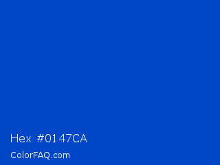 Hex #0147ca Color is a normal blue color and the nearest color is Absolute Zero #0048ba. Hex code #0147ca and RGB value is rgb(1,71,202). In RGB color space, this color is composed of 0% red, 28% green, 79% blue, In CMYK color space, this color is composed of 100% cyan, 65% magenta, 0% yellow , 21% black , In HSL color space, this color has a hue angle of 219° , 99% saturation and 40% lightness.