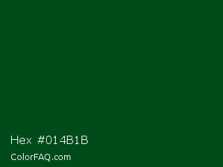 Hex #014b1b Color is a very dark green color and the nearest color is Crusoe #004816. Hex code #014b1b and RGB value is rgb(1,75,27). In RGB color space, this color is composed of 0% red, 29% green, 11% blue, In CMYK color space, this color is composed of 99% cyan, 0% magenta, 64% yellow , 71% black , In HSL color space, this color has a hue angle of 141° , 97% saturation and 15% lightness.