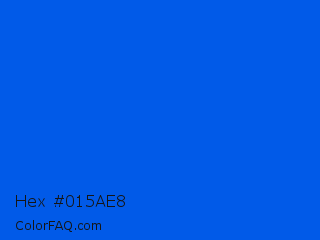 Hex #015ae8 Color is a normal blue color and the nearest color is Blue Ribbon #0066ff. Hex code #015ae8 and RGB value is rgb(1,90,232). In RGB color space, this color is composed of 0% red, 35% green, 91% blue, In CMYK color space, this color is composed of 100% cyan, 61% magenta, 0% yellow , 9% black , In HSL color space, this color has a hue angle of 217° , 99% saturation and 46% lightness.