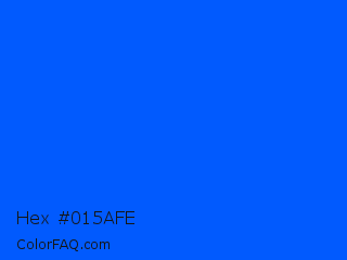 Hex #015afe Color is a normal blue color and the nearest color is Blue Ribbon #0066ff. Hex code #015afe and RGB value is rgb(1,90,254). In RGB color space, this color is composed of 0% red, 35% green, 100% blue, In CMYK color space, this color is composed of 100% cyan, 65% magenta, 0% yellow , 0% black , In HSL color space, this color has a hue angle of 219° , 99% saturation and 50% lightness.