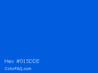 Hex #015dde Color is a normal blue color and the nearest color is Science Blue #0066cc. Hex code #015dde and RGB value is rgb(1,93,222). In RGB color space, this color is composed of 0% red, 36% green, 87% blue, In CMYK color space, this color is composed of 100% cyan, 58% magenta, 0% yellow , 13% black , In HSL color space, this color has a hue angle of 215° , 99% saturation and 44% lightness.