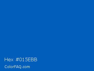 Hex #015ebb Color is a normal blue color and the nearest color is Spanish Blue #0070b8. Hex code #015ebb and RGB value is rgb(1,94,187). In RGB color space, this color is composed of 0% red, 37% green, 73% blue, In CMYK color space, this color is composed of 99% cyan, 50% magenta, 0% yellow , 27% black , In HSL color space, this color has a hue angle of 210° , 99% saturation and 37% lightness.