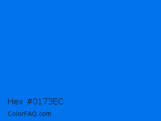 Hex #0173ec Color is a normal blue color and the nearest color is Brandeis Blue #0070ff. Hex code #0173ec and RGB value is rgb(1,115,236). In RGB color space, this color is composed of 0% red, 45% green, 93% blue, In CMYK color space, this color is composed of 100% cyan, 51% magenta, 0% yellow , 7% black , In HSL color space, this color has a hue angle of 211° , 99% saturation and 46% lightness.
