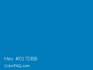Hex #017dbb Color is a normal blue color and the nearest color is Star Command Blue #007bb8. Hex code #017dbb and RGB value is rgb(1,125,187). In RGB color space, this color is composed of 0% red, 49% green, 73% blue, In CMYK color space, this color is composed of 99% cyan, 33% magenta, 0% yellow , 27% black , In HSL color space, this color has a hue angle of 200° , 99% saturation and 37% lightness.