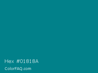 Hex #01818a Color is a dark cyan color and the nearest color is Blue Lagoon #017987. Hex code #01818a and RGB value is rgb(1,129,138). In RGB color space, this color is composed of 0% red, 51% green, 54% blue, In CMYK color space, this color is composed of 99% cyan, 7% magenta, 0% yellow , 46% black , In HSL color space, this color has a hue angle of 184° , 99% saturation and 27% lightness.