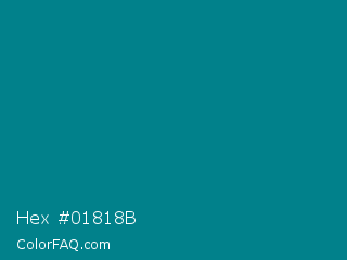 Hex #01818b Color is a dark cyan color and the nearest color is Blue Lagoon #017987. Hex code #01818b and RGB value is rgb(1,129,139). In RGB color space, this color is composed of 0% red, 51% green, 55% blue, In CMYK color space, this color is composed of 99% cyan, 7% magenta, 0% yellow , 45% black , In HSL color space, this color has a hue angle of 184° , 99% saturation and 27% lightness.