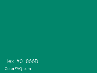Hex #01866b Color is a dark cyan color and the nearest color is Deep Sea #01826b. Hex code #01866b and RGB value is rgb(1,134,107). In RGB color space, this color is composed of 0% red, 53% green, 42% blue, In CMYK color space, this color is composed of 99% cyan, 0% magenta, 20% yellow , 47% black , In HSL color space, this color has a hue angle of 168° , 99% saturation and 26% lightness.