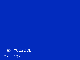 Hex #022bbe Color is a normal blue color and the nearest color is UA Blue #0033aa. Hex code #022bbe and RGB value is rgb(2,43,190). In RGB color space, this color is composed of 1% red, 17% green, 75% blue, In CMYK color space, this color is composed of 99% cyan, 77% magenta, 0% yellow , 25% black , In HSL color space, this color has a hue angle of 227° , 98% saturation and 38% lightness.