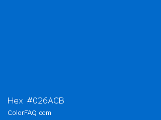 Hex #026acb Color is a normal blue color and the nearest color is Science Blue #0066cc. Hex code #026acb and RGB value is rgb(2,106,203). In RGB color space, this color is composed of 1% red, 42% green, 80% blue, In CMYK color space, this color is composed of 99% cyan, 48% magenta, 0% yellow , 20% black , In HSL color space, this color has a hue angle of 209° , 98% saturation and 40% lightness.