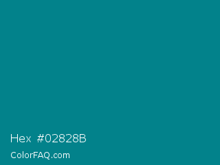 Hex #02828b Color is a dark cyan color and the nearest color is Metallic Seaweed #0a7e8c. Hex code #02828b and RGB value is rgb(2,130,139). In RGB color space, this color is composed of 1% red, 51% green, 55% blue, In CMYK color space, this color is composed of 99% cyan, 6% magenta, 0% yellow , 45% black , In HSL color space, this color has a hue angle of 184° , 97% saturation and 28% lightness.