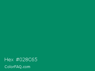 Hex #028c65 Color is a dark green color and the nearest color is Observatory #02866f. Hex code #028c65 and RGB value is rgb(2,140,101). In RGB color space, this color is composed of 1% red, 55% green, 40% blue, In CMYK color space, this color is composed of 99% cyan, 0% magenta, 28% yellow , 45% black , In HSL color space, this color has a hue angle of 163° , 97% saturation and 28% lightness.