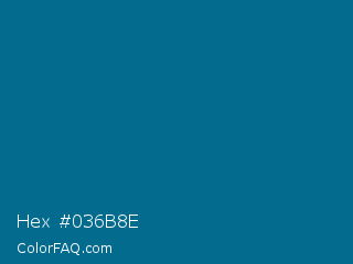Hex #036b8e Color is a dark blue color and the nearest color is Sea Blue #006994. Hex code #036b8e and RGB value is rgb(3,107,142). In RGB color space, this color is composed of 1% red, 42% green, 56% blue, In CMYK color space, this color is composed of 98% cyan, 25% magenta, 0% yellow , 44% black , In HSL color space, this color has a hue angle of 195° , 96% saturation and 28% lightness.