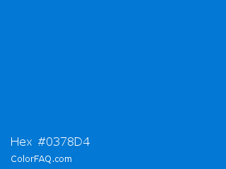 Hex #0378d4 Color is a normal blue color and the nearest color is True Blue #0073cf. Hex code #0378d4 and RGB value is rgb(3,120,212). In RGB color space, this color is composed of 1% red, 47% green, 83% blue, In CMYK color space, this color is composed of 99% cyan, 43% magenta, 0% yellow , 17% black , In HSL color space, this color has a hue angle of 206° , 97% saturation and 42% lightness.