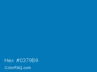 Hex #0379b9 Color is a normal blue color and the nearest color is Star Command Blue #007bb8. Hex code #0379b9 and RGB value is rgb(3,121,185). In RGB color space, this color is composed of 1% red, 47% green, 73% blue, In CMYK color space, this color is composed of 98% cyan, 35% magenta, 0% yellow , 27% black , In HSL color space, this color has a hue angle of 201° , 97% saturation and 37% lightness.