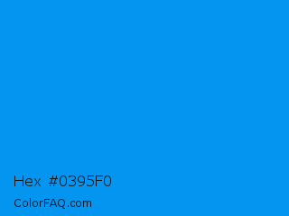 Hex #0395f0 Color is a normal blue color and the nearest color is Vivid Cerulean #00aaee. Hex code #0395f0 and RGB value is rgb(3,149,240). In RGB color space, this color is composed of 1% red, 58% green, 94% blue, In CMYK color space, this color is composed of 99% cyan, 38% magenta, 0% yellow , 6% black , In HSL color space, this color has a hue angle of 203° , 98% saturation and 48% lightness.