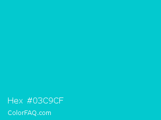 Hex #03c9cf Color is a normal cyan color and the nearest color is Robins Egg Blue #00cccc. Hex code #03c9cf and RGB value is rgb(3,201,207). In RGB color space, this color is composed of 1% red, 79% green, 81% blue, In CMYK color space, this color is composed of 99% cyan, 3% magenta, 0% yellow , 19% black , In HSL color space, this color has a hue angle of 182° , 97% saturation and 41% lightness.