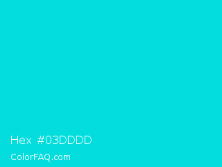 Hex #03dddd Color is a normal cyan color and the nearest color is Bright Turquoise #08e8de. Hex code #03dddd and RGB value is rgb(3,221,221). In RGB color space, this color is composed of 1% red, 87% green, 87% blue, In CMYK color space, this color is composed of 99% cyan, 0% magenta, 0% yellow , 13% black , In HSL color space, this color has a hue angle of 180° , 97% saturation and 44% lightness.