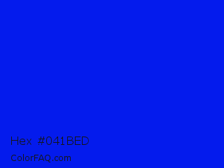 Hex #041bed Color is a normal blue color and the nearest color is Bluebonnet #1c1cf0. Hex code #041bed and RGB value is rgb(4,27,237). In RGB color space, this color is composed of 2% red, 11% green, 93% blue, In CMYK color space, this color is composed of 98% cyan, 89% magenta, 0% yellow , 7% black , In HSL color space, this color has a hue angle of 234° , 97% saturation and 47% lightness.