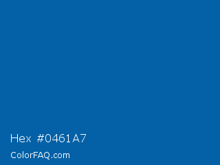 Hex #0461a7 Color is a normal blue color and the nearest color is Sapphire Blue #0067a5. Hex code #0461a7 and RGB value is rgb(4,97,167). In RGB color space, this color is composed of 2% red, 38% green, 65% blue, In CMYK color space, this color is composed of 98% cyan, 42% magenta, 0% yellow , 35% black , In HSL color space, this color has a hue angle of 206° , 95% saturation and 34% lightness.