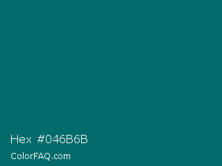 Hex #046b6b Color is a very dark cyan color and the nearest color is Mosque #036a6e. Hex code #046b6b and RGB value is rgb(4,107,107). In RGB color space, this color is composed of 2% red, 42% green, 42% blue, In CMYK color space, this color is composed of 96% cyan, 0% magenta, 0% yellow , 58% black , In HSL color space, this color has a hue angle of 180° , 93% saturation and 22% lightness.