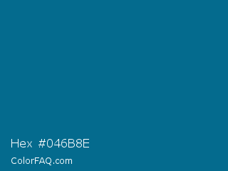 Hex #046b8e Color is a dark blue color and the nearest color is Sea Blue #006994. Hex code #046b8e and RGB value is rgb(4,107,142). In RGB color space, this color is composed of 2% red, 42% green, 56% blue, In CMYK color space, this color is composed of 97% cyan, 25% magenta, 0% yellow , 44% black , In HSL color space, this color has a hue angle of 195° , 95% saturation and 29% lightness.