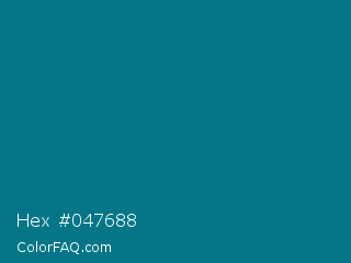 Hex #047688 Color is a dark cyan color and the nearest color is Blue Lagoon #017987. Hex code #047688 and RGB value is rgb(4,118,136). In RGB color space, this color is composed of 2% red, 46% green, 53% blue, In CMYK color space, this color is composed of 97% cyan, 13% magenta, 0% yellow , 47% black , In HSL color space, this color has a hue angle of 188° , 94% saturation and 27% lightness.