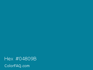 Hex #04809b Color is a normal cyan color and the nearest color is CG Blue #007aa5. Hex code #04809b and RGB value is rgb(4,128,155). In RGB color space, this color is composed of 2% red, 50% green, 61% blue, In CMYK color space, this color is composed of 97% cyan, 17% magenta, 0% yellow , 39% black , In HSL color space, this color has a hue angle of 191° , 95% saturation and 31% lightness.