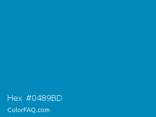 Hex #0489bd Color is a normal blue color and the nearest color is Blue NCS #0087bd. Hex code #0489bd and RGB value is rgb(4,137,189). In RGB color space, this color is composed of 2% red, 54% green, 74% blue, In CMYK color space, this color is composed of 98% cyan, 28% magenta, 0% yellow , 26% black , In HSL color space, this color has a hue angle of 197° , 96% saturation and 38% lightness.