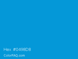 Hex #0498d8 Color is a normal blue color and the nearest color is Rich Electric Blue #0892d0. Hex code #0498d8 and RGB value is rgb(4,152,216). In RGB color space, this color is composed of 2% red, 60% green, 85% blue, In CMYK color space, this color is composed of 98% cyan, 30% magenta, 0% yellow , 15% black , In HSL color space, this color has a hue angle of 198° , 96% saturation and 43% lightness.