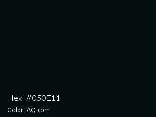 Hex #050e11 Color is a almost black blue color and the nearest color is Rich Black FOGRA29 #010b13. Hex code #050e11 and RGB value is rgb(5,14,17). In RGB color space, this color is composed of 2% red, 5% green, 7% blue, In CMYK color space, this color is composed of 71% cyan, 18% magenta, 0% yellow , 93% black , In HSL color space, this color has a hue angle of 195° , 55% saturation and 4% lightness.