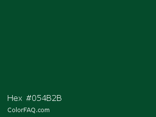 Hex #054b2b Color is a very dark green color and the nearest color is Sherwood Green #02402c. Hex code #054b2b and RGB value is rgb(5,75,43). In RGB color space, this color is composed of 2% red, 29% green, 17% blue, In CMYK color space, this color is composed of 93% cyan, 0% magenta, 43% yellow , 71% black , In HSL color space, this color has a hue angle of 153° , 88% saturation and 16% lightness.
