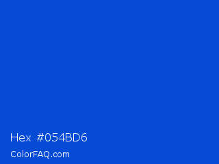 Hex #054bd6 Color is a normal blue color and the nearest color is Absolute Zero #0048ba. Hex code #054bd6 and RGB value is rgb(5,75,214). In RGB color space, this color is composed of 2% red, 29% green, 84% blue, In CMYK color space, this color is composed of 98% cyan, 65% magenta, 0% yellow , 16% black , In HSL color space, this color has a hue angle of 220° , 95% saturation and 43% lightness.