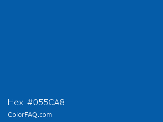 Hex #055ca8 Color is a normal blue color and the nearest color is Endeavour #0056a7. Hex code #055ca8 and RGB value is rgb(5,92,168). In RGB color space, this color is composed of 2% red, 36% green, 66% blue, In CMYK color space, this color is composed of 97% cyan, 45% magenta, 0% yellow , 34% black , In HSL color space, this color has a hue angle of 208° , 94% saturation and 34% lightness.